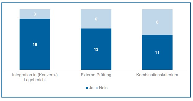 - freiwillige externe Prüfung der (konsolidierten) nichtfinanziellen Erklärung bzw des gesonderten nichtfinanziellen Berichts,