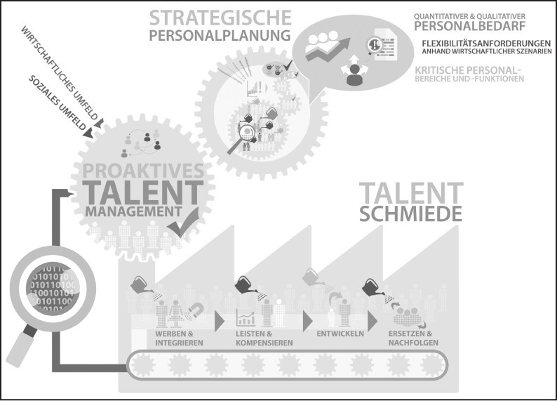 Als zentrale strategische Instrumente fungieren die mithilfe von Szenario-Techniken abgeleiteten, künftigen Personalbedarfe und die Bestimmung der damit verbundenen Fähigkeiten. So wird sichergestellt, dass auch bei einem extremen oder unwahrscheinlichen Zukunftsverlauf die unternehmerische Leistungsfähigkeit erhalten bleibt.
