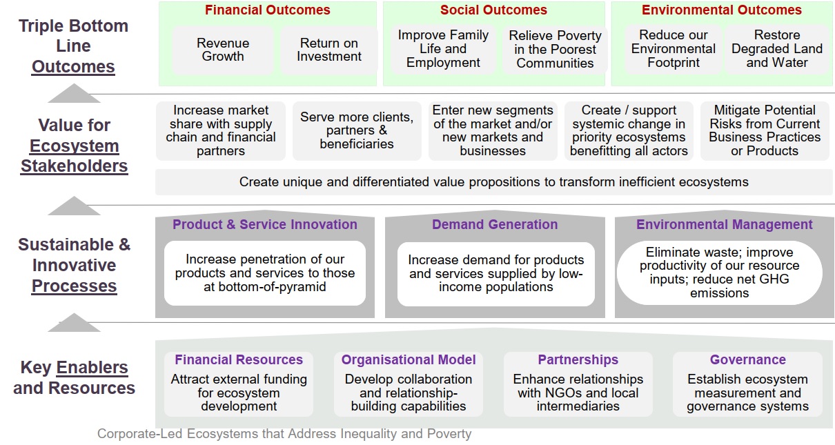 Seine Lösung: Die Ausweitung der BSC zur Messung der Ziele einer Multi-Stakeholder Strategie für integratives Wachstum.