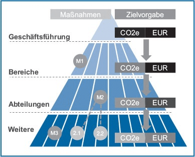 Um die Dekarbonisierung von Unternehmen in strukturierter Weise voranzutreiben, bedarf es der Einführung einer Methodik, sowie Prozesse und Systeme nach dem Vorbild einer finanziellen Unternehmensteuerung.
