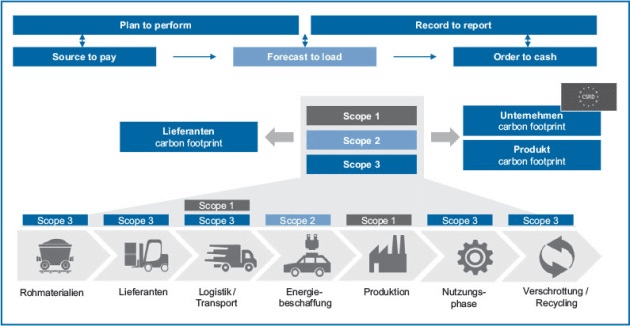 Um die gesamte Wirkung von Dekarbonisierungsmaßnahmen messen zu können, ist es notwendig, die relevanten Basisinformationen in den operativen Systemen abzubilden. Ein Beispiel hierfür ist die Steuerung des Einkaufs, der eine Schlüsselrolle spielt, wenn es darum geht, die Scope-3-Emissionen zu reduzieren. Konkret müssen in den Transaktionstabellen auch Nachhaltigkeitsthemen abgedeckt werden, damit der Einkäufer in Echtzeit sieht, wie viel CO2e bereits eingekauft wurden und welche Menge noch zur Verfügung steht. Eine Darstellung der Daten auf Transaktionsebene ist hier erforderlich.
