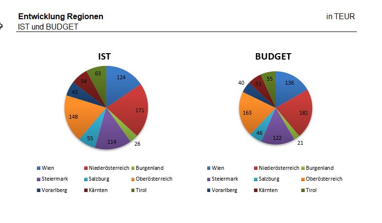 Wesentlich besser ist für diesen Anwendungszweck ein Balkendiagramm geeignet, wobei die Abweichung ergänzend zu den Ist-Werten in Form von grünen und roten Balken dargestellt wird.