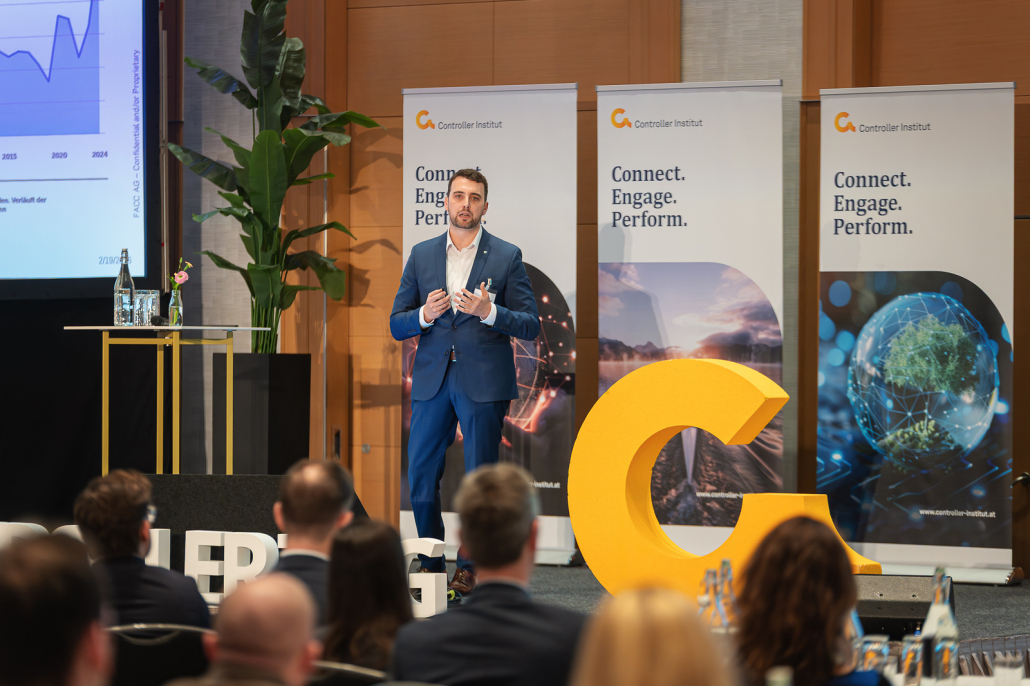 In der zweiten Keynote gab Florian Heindl (FACC) Einblicke in die Steuerungsarbeit eines Unternehmens, das sich mitten in einer umfassenden Transformation befindet. Unter dem Titel „Unternehmen im Wandel: FACC im Spannungsfeld von internationalem Wettbewerb, hohen Standortkosten und geopolitischen Veränderungen“ erläuterte er, wie die Finanzfunktion FACC dabei unterstützt, Profitabilität und Cashflow zu steigern und gleichzeitig die Auswirkungen geopolitischer Entwicklungen im Blick zu behalten.