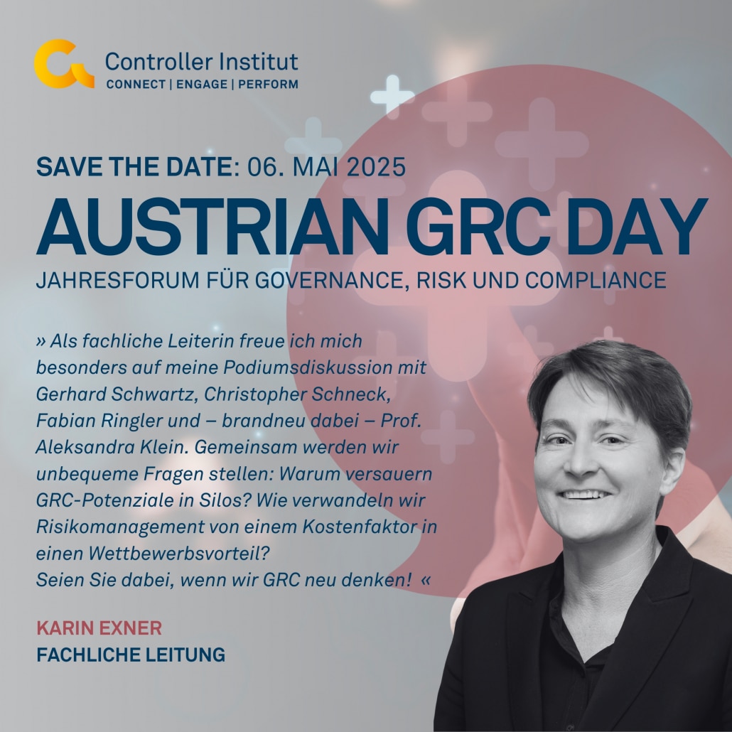 Am 06 Mai. findet in Wien der Austrian GRC Day präsentiert unter dem Motto „GRC Reloaded: Risikointelligenz als Schlüssel zur Wertschaffung“ statt. Melden Sie sich jetzt an und erfahren Sie von unseren Expert:innen wie Risikointelligenz aktiv zur Unternehmenswertsteigerung beiträgt.