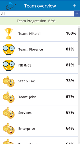 Wir haben für unser Finance-Team einen Schwerpunkt auf „Technical Skilling“ gelegt. Das habe ich zum Anlass genommen, eine eigene App zu entwickeln. Und zwar ein App, die es ermöglicht unsere Lernerfolge in diesem Bereich festzuhalten und auch diese leicht mit dem Team teilen zu können. Getreu dem Motto „Less is more“, ist auch das Konzept der Applikation ganz einfach: Jede Mitarbeiterin und jeder Mitarbeiter, der die App aufruft, kann sofort den Status des Lernerfolges vom eigenen Team sehen. Je höher der Prozentsatz, umso breiter lächelt einem ein Smiley entgegen. Im Sinne der Gamification sieht man natürlich auch wie man sich im Vergleich zu den anderen Finance Teams schlägt. Jeder, der oder die die App verwendet, hat die Möglichkeit, den Status vom eigenen Team zu verbessern, indem die Trainings durchgeführt und die individuellen Lernerfolge bestätigt werden. Erledigte Aufgaben werden durch ein Häkchen gekennzeichnet und durch das Hochladen eines Fotos dokumentiert – ein Lächeln, das zeigt wie glücklich man über den Fortschritt ist reicht in diesem Fall ausnahmsweise als Dokumentation.