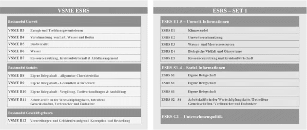 Der Entwurf zu den VSME ESRS besteht aus den folgenden drei Modulen: