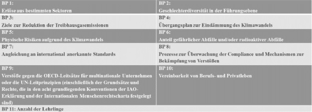 Die (beabsichtigte) Synergie zwischen den beiden Rahmenwerken zeigt eine Gegenüberstellung der – sofern wesentlich[16] – geforderten Angaben zu den Themen Umwelt, Soziales und Governance (siehe Abb 1).