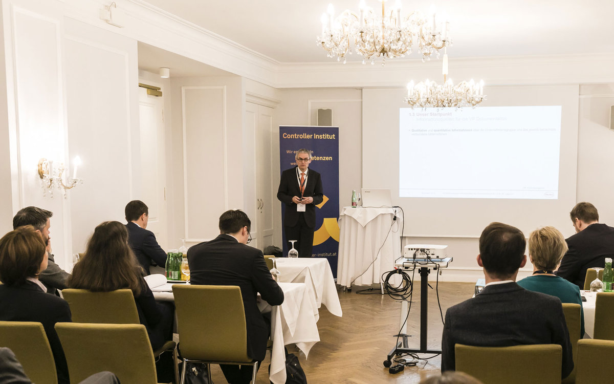 Im Anschluss an die Begrüßung durch Rita Niedermayr, Stefan Menhofer (Leitung Zeitschriften | Linde Verlag) und Josef Baumüller (Senior Advisor | Controller Institut), sprach Kai Grönke(Partner | Horváth & Partners Management Consultants) über den Aufbruch in die Ära 4.0 – Reengineering des CFO-Bereichs.