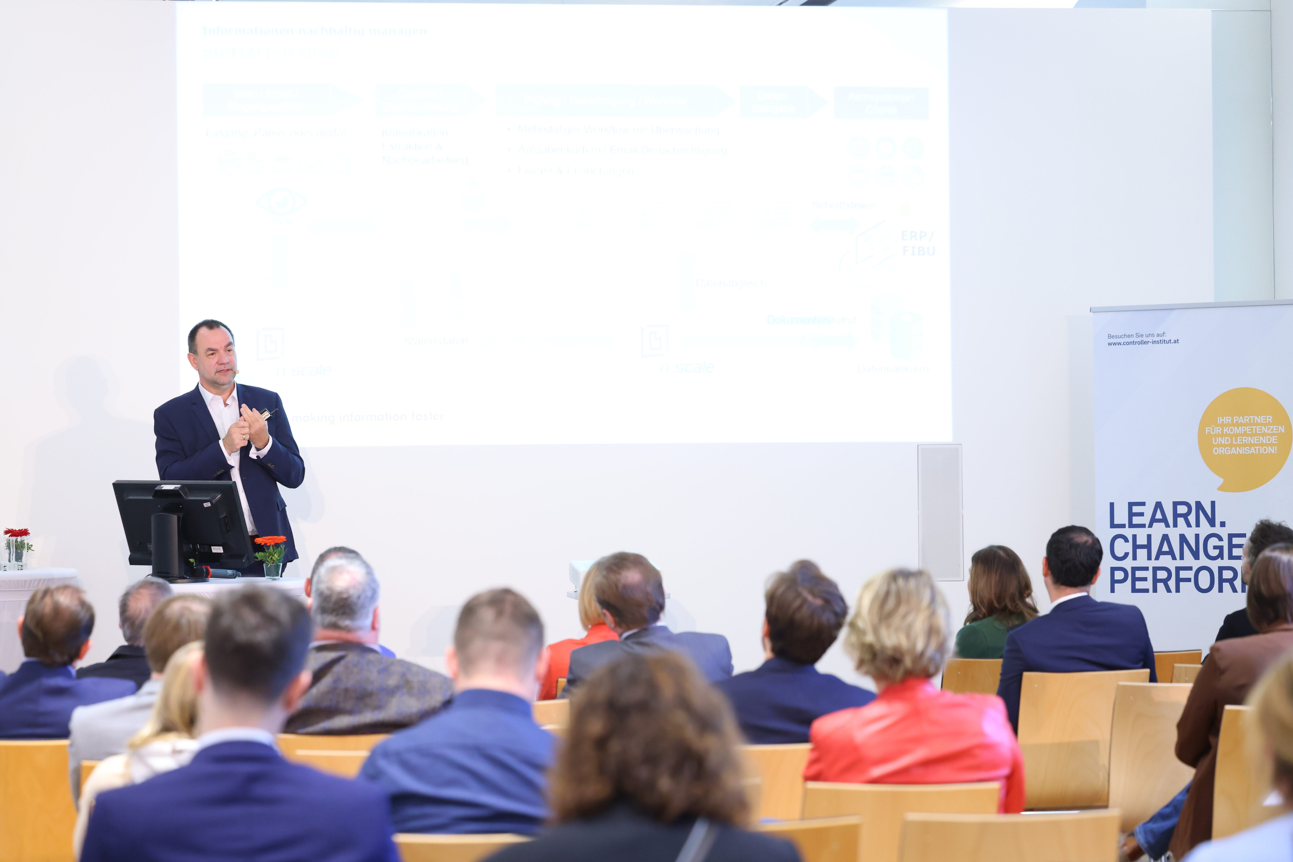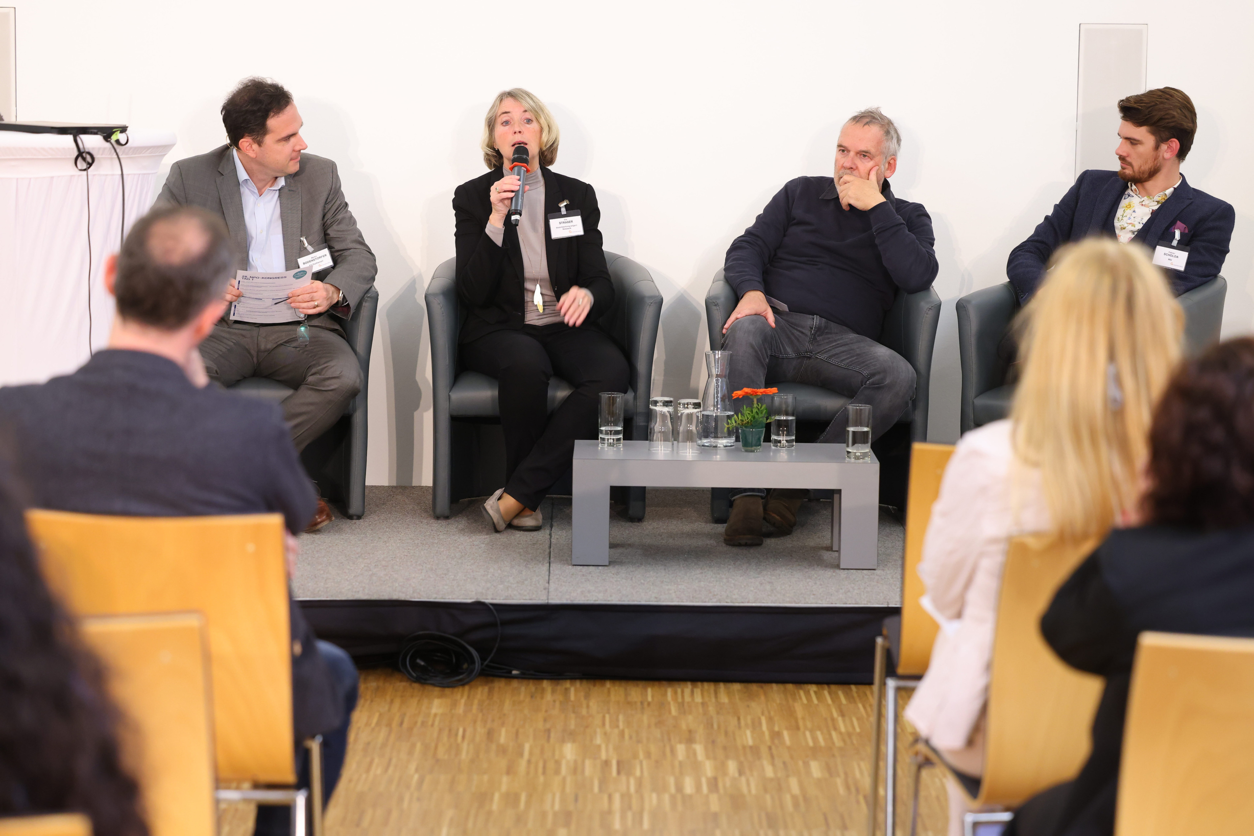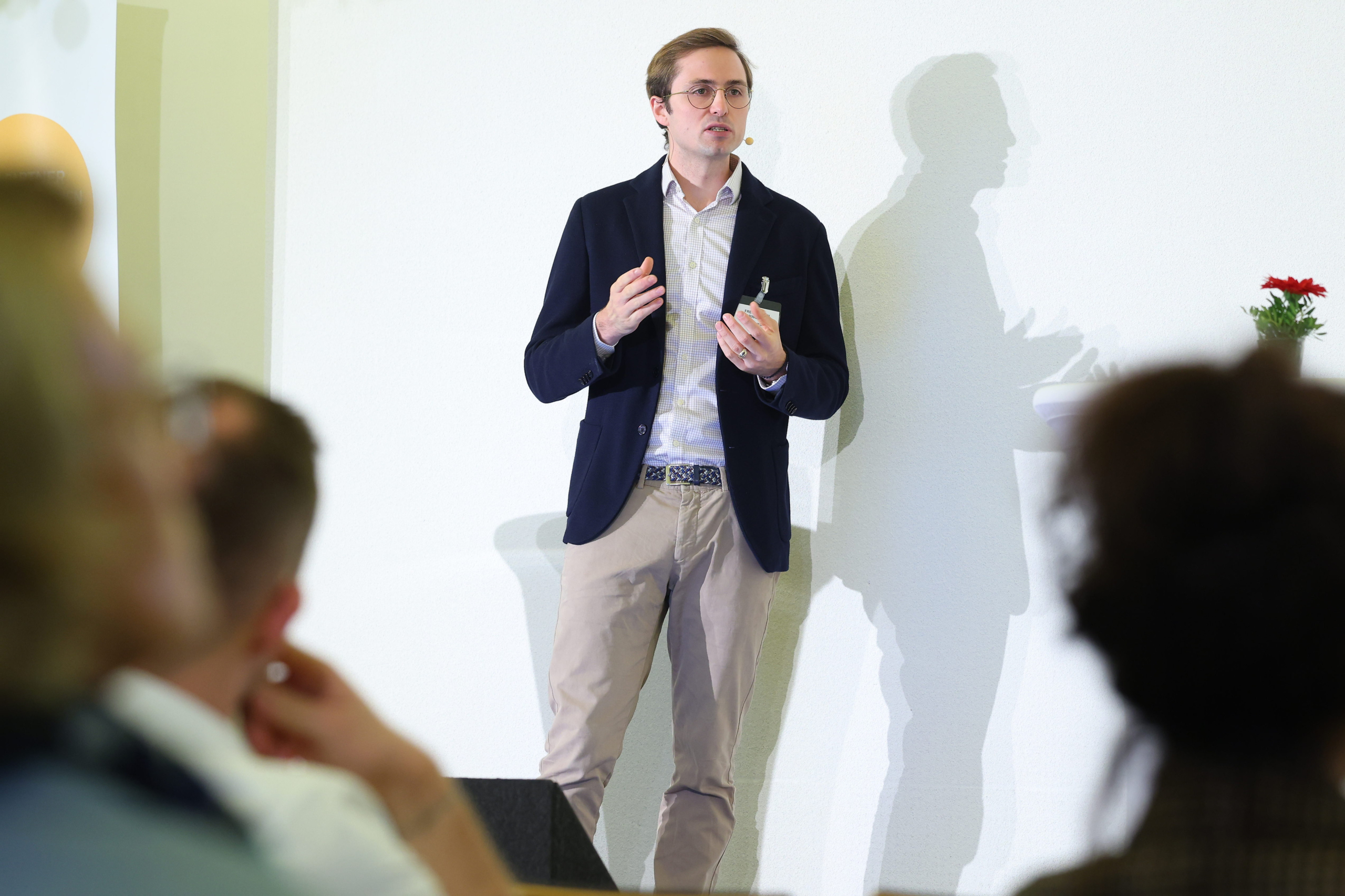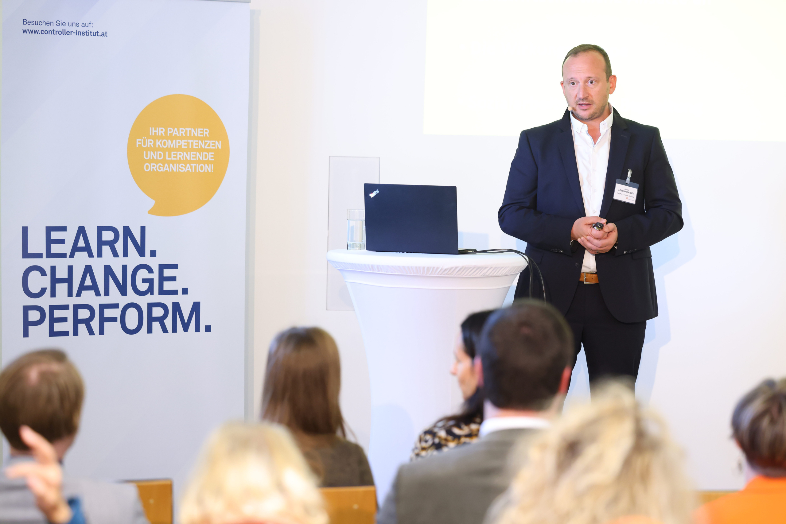 Nach der ersten Kaffeepause fanden zwei parallele Round Tables statt. Im Round Table A diskutierte Clemens Nachbauer (Controller Institut) zum Thema Next Generation Leadership: Wert & Wirkung von nachhaltiger Führung. Dazu bat er Natalya Nepomnyashcha (Netzwerk Chancen), Christoph Mayer (Weinviertel Museum Betriebs GmbH) und Hannah Lux (Vollpension) auf die Bühne.