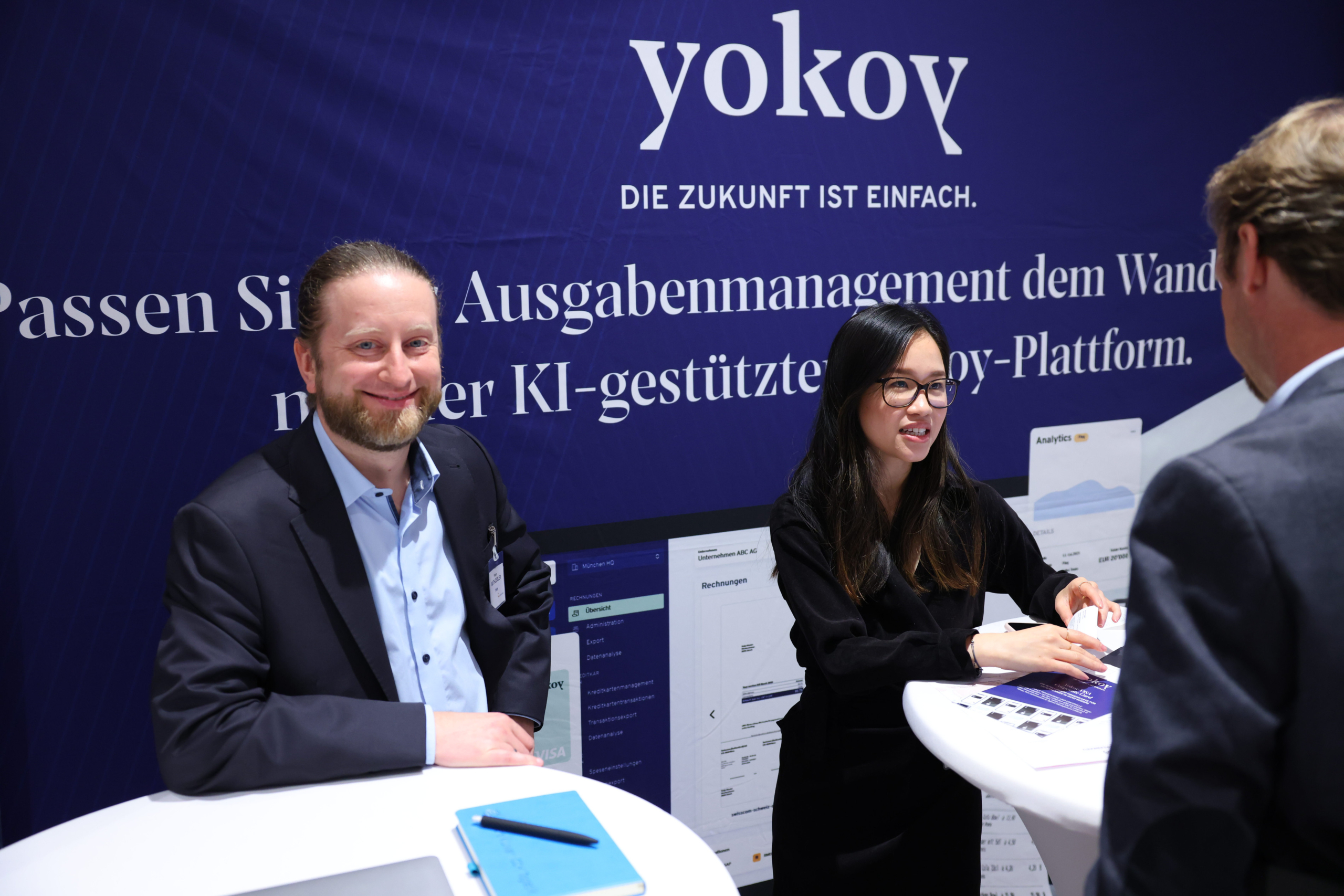 Stephan Hebenstreit (Yokoy) und Sonja Exner (DO & CO) sprachen in Forum D über Prozessautomatisierung zur Erreichung von Nachhaltigkeits- und Kostenzielen.