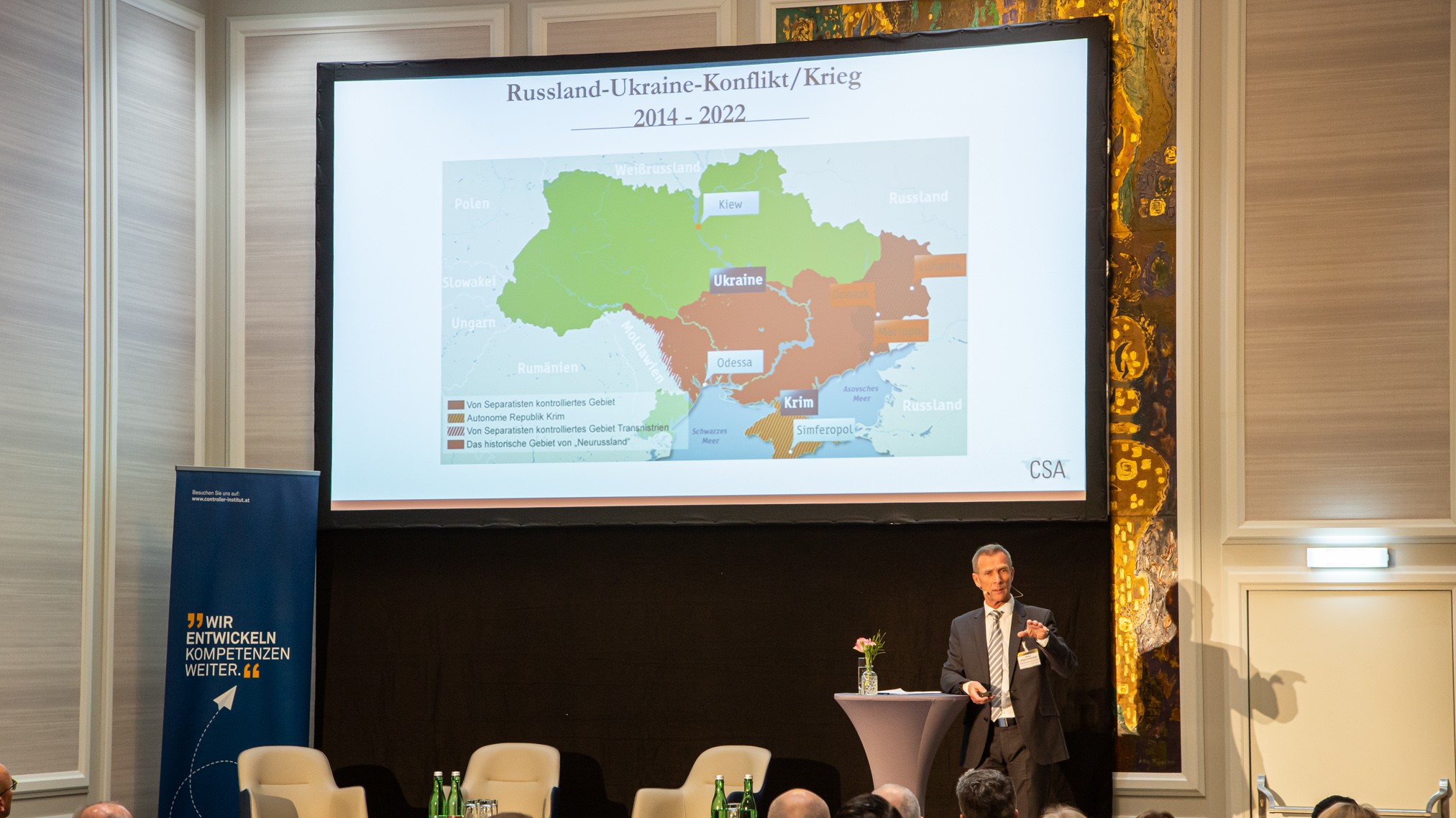 Die zweite Keynote von Wolfgang Feichtinger (Präsident des Center für Strategische Analysen, CSA) widmete sich einem breiteren Thema: den geopolitischen Risiken und deren Gefahr für die globale Sicherheit. Nicht nur der Krieg in der Ukraine war Thema dieser spannenden Keynote, denn geopolitische Risiken gibt es derzeit en masse: der Machtkampf um den Indo-Pazifik zwischen China und den USA, der MENA-Raum, das Ringen um die Arktis, die Einflusszone Russlands in Venezuela und Kuba oder die Region Westbalkan, um hier nur einige zu nennen. Derzeit positionieren sich viele Staaten neu. Die Ukraine ist in den Fokus gerückt, weil Russland sich ohne Ukraine gefährdet fühlt. Hier kommt es zum Kampf Demokratie vs. Autoritäre Systeme oder wie Feichtinger sagte: „Krisen entstehen meistens an den Rändern.“