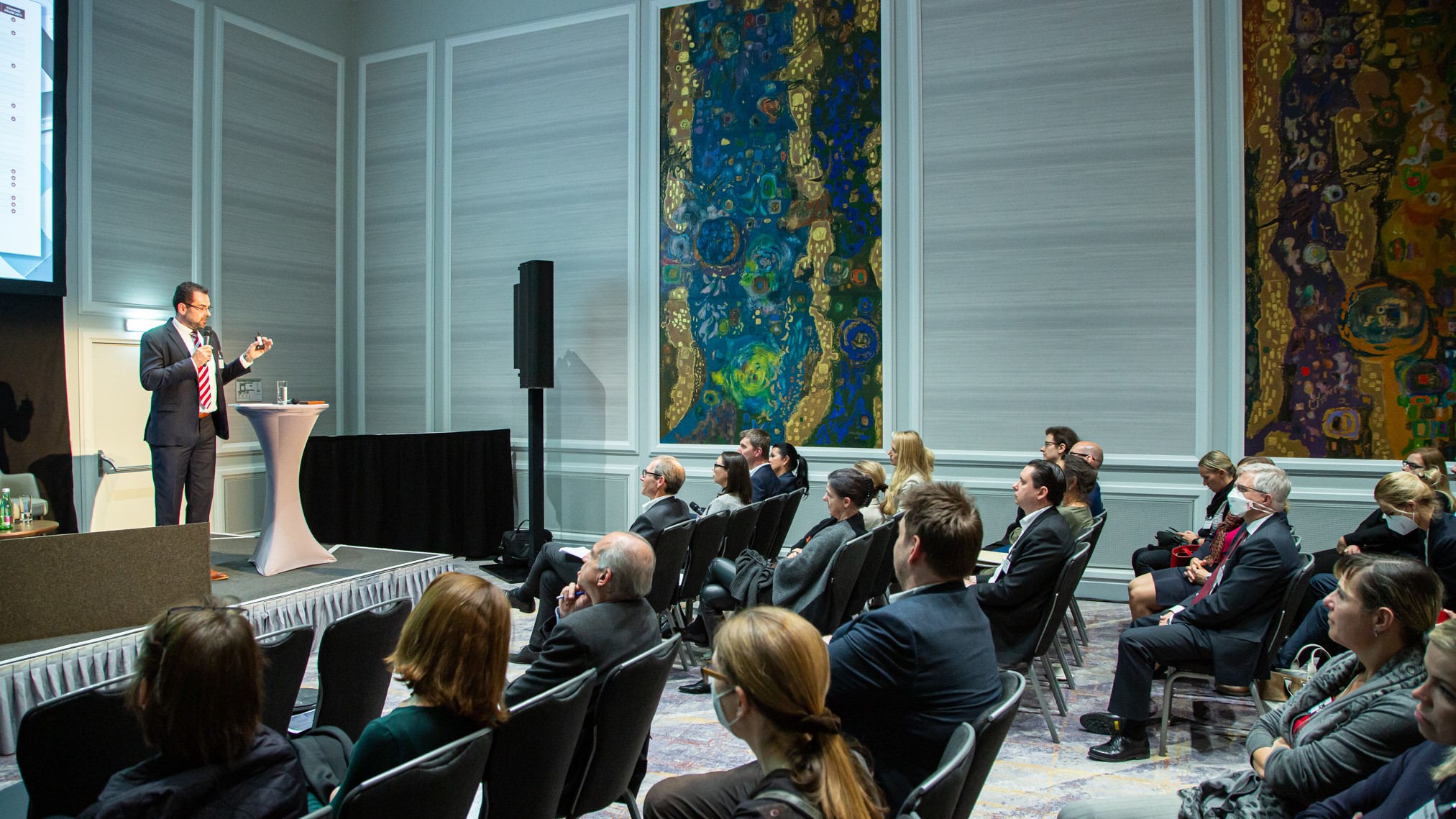 Bernhard Zacherl und Gottfried Tonweber (beide EY Österreich) sprachen über Nachhaltige Cyber-Security, der Weg zur Cyber-Resilienz? Dabei gingen sie insbesondere auf die Integration verschiedener Cyber-Security-Analysemethoden, das Business Continuity Management & Information Security Management als Schlüssel zu nachhaltiger Cyber-Resilienz sowie Krisenmanagement & Krisenkommunikation ein. Im Anschluss fand eine Panel-Diskussion statt.
