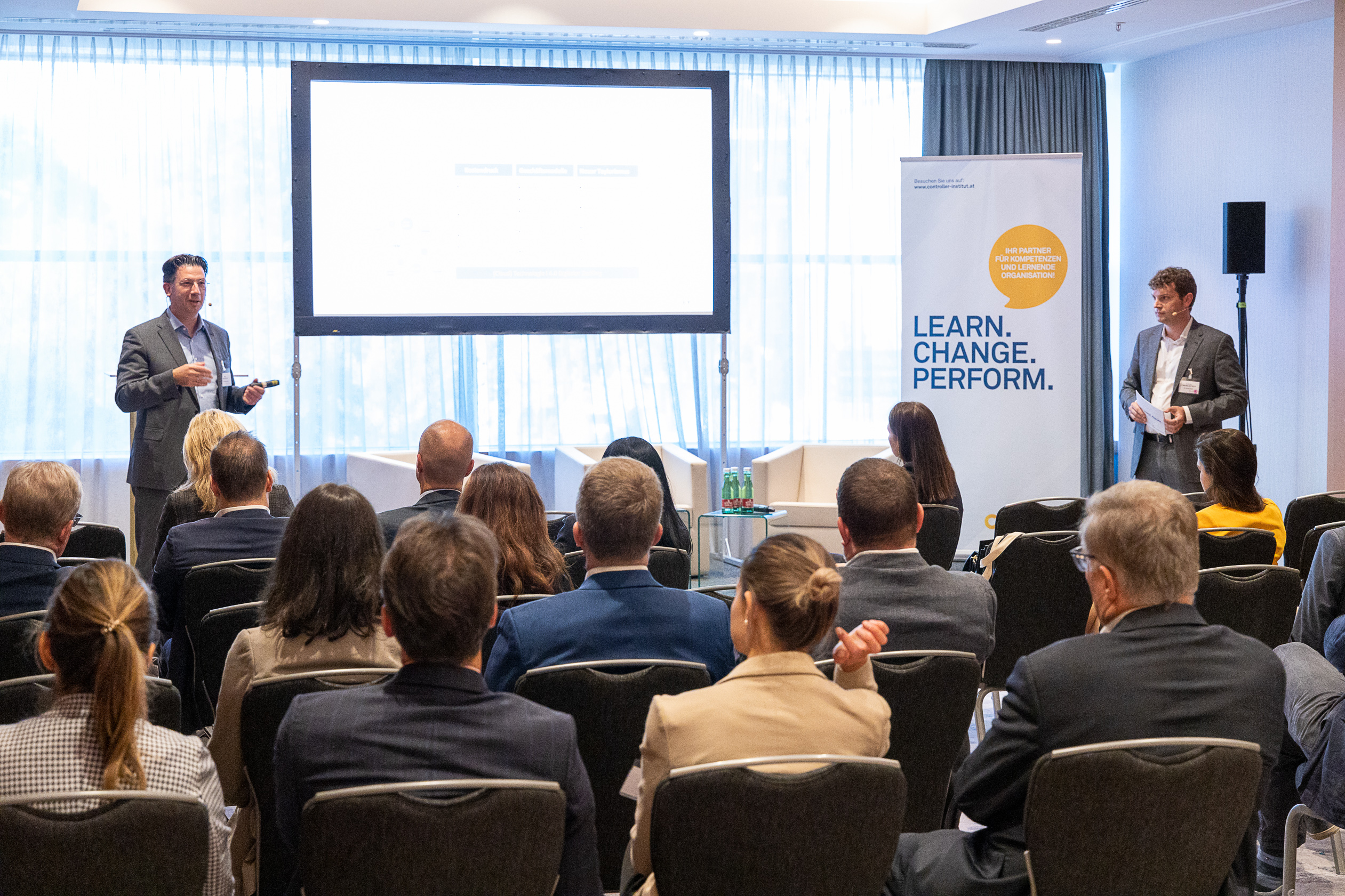Die Rolle des CFOs neu interpretiert haben in Forum 1 Stefan Leber und Peter Schentler (beide Horváth). Unter dem Gesichtspunkt des CFOs, als kaufmännisches Gewissen des Unternehmens, stellten sie die Frage nach dem Leben in der Dauerkrise – Wie Unternehmen vor dem Hintergrund multipler Störungen resilienter werden. Welche Ansatzpunkte gibt es für die Steuerung von Unternehmen in Krisenzeiten? Was sind die wichtigsten Learnings aus den letzten Jahren, die Mitarbeiter:innen des CFO-Bereichs für die Zukunft mitnehmen können. Im Anschluss an die Keynote wurde Norbert Nettesheim (Andritz AG) auf die Bühne gebeten, um mit den beiden über die Frage „Wie richte ich Prozesse auf die Unsicherheit aus?“ zu diskutieren. Norbert Nettesheim fasste seine Rolle so zusammen: „Der CFO und sein Team müssen die Themen und deren Wirkungen wirtschaftlich bewerten – d.h. in Szenario-Analysen die Chancen und Risiken in Bezug auf Umsatz, Kosten, Ergebnis und Cash darstellen. Nur so schafft man es, ein gleiches Verständnis zu den Auswirkungen der veränderten Rahmenbedingungen zu erzeugen, die Themen entsprechend hoch zu priorisieren und auf die Tagesordnung aller Managementteams zu bringen.“