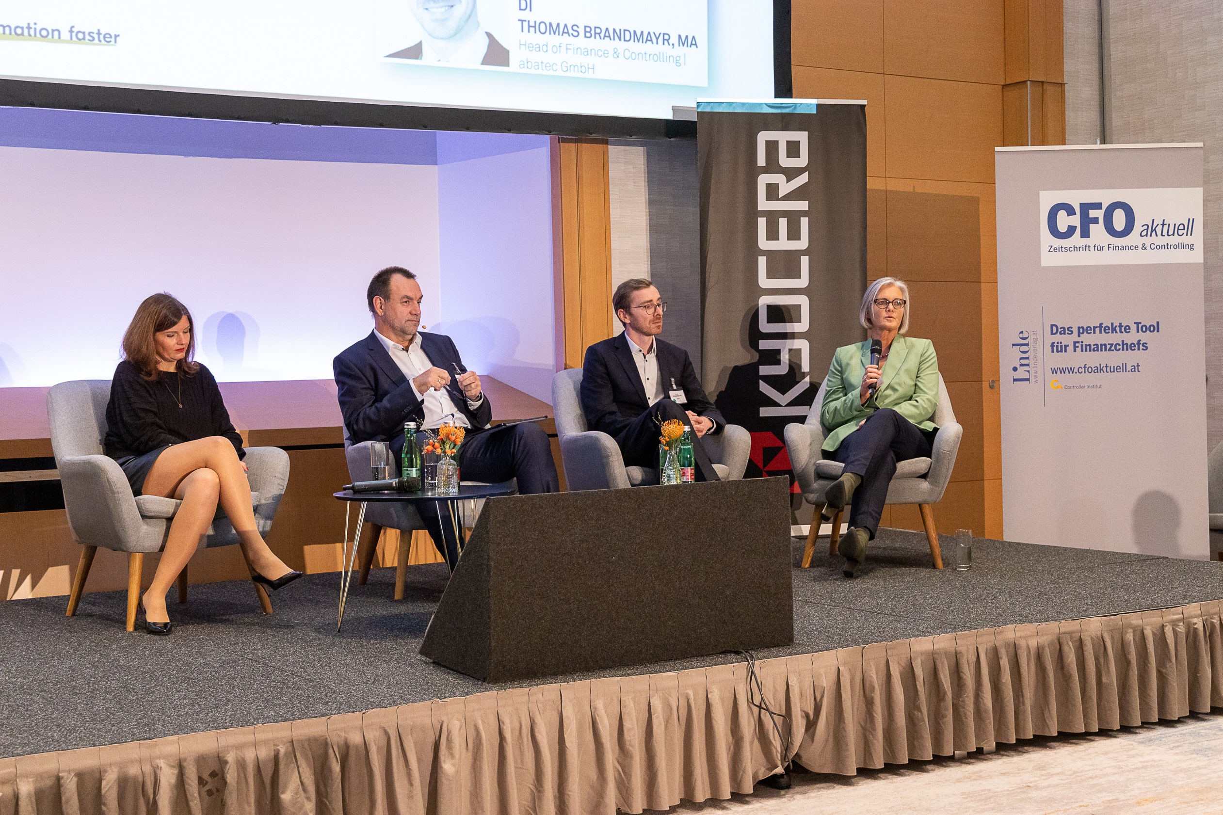 Im Anschluss an die Keynote diskutierte Rita Niedermayr am Podium dieses Jahr mit Reinhard Czerny (Energie Burgenland AG), Klemens Eiter (Porr AG), Hanno Lorenz (Denkfabrik Agenda Austria), Stefan Uher (EY Österreich), Christina Wilfinger (SAP Österreich) über Transformation trotz Krise(n) – Wie CFOs Wandel gestalten. Auf die Frage, ob die Krisen als Beschleuniger oder Bremse der Transformation des Unternehmens wirken, antwortete Reinhard Czerny mit einer neuen Vision für Energie Burgenland AG. „Nur jene Unternehmen, denen es gelingt, die Krise als Beschleuniger der Transformation zu nützen, werden überleben und gestärkt aus der Krise gehen.“, so Czerny. Christina Willfinger meinte, dass Sie als SAP nun noch intensiver die Kunden auf dem Weg in die Cloud und die Möglichkeiten der digitalen Transformation unterstützen.