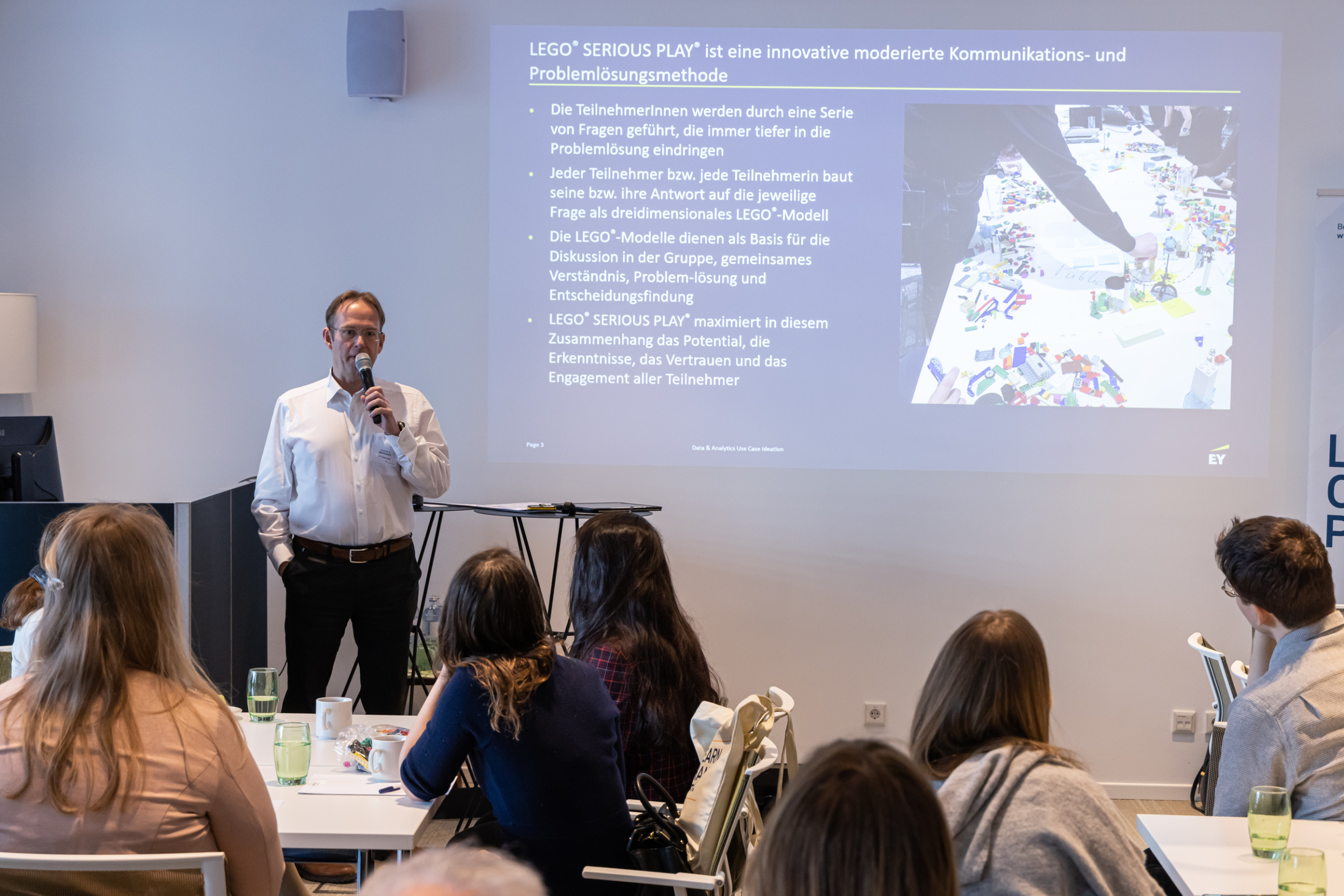 In der ersten parallelen Session Data & Analytics Use Case Ideation mit LEGO® SERIOUS PLAY® präsentierte Alexander N. Menches (EY Österreich) die Methode LEGO® SERIOUS PLAY®. Welche Fragestellungen möchte das Business datengetrieben beantworten? Mit LEGO® SERIOUS PLAY® können Data & Analytics Use Cases spielerisch erarbeitet werden.