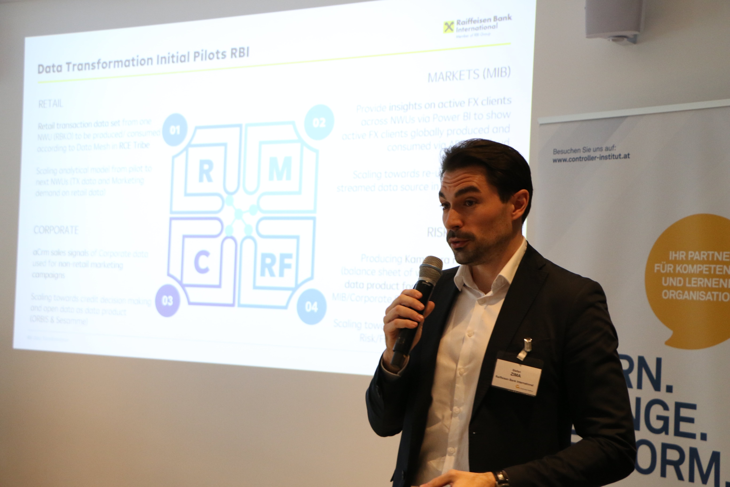 Die Abschluss-Keynote hielt Stefan Zima (Raiffeisen Bank International AG). Er sprach über das Year of Data 2023 – Data Transformation in der Raiffeisenbank International.