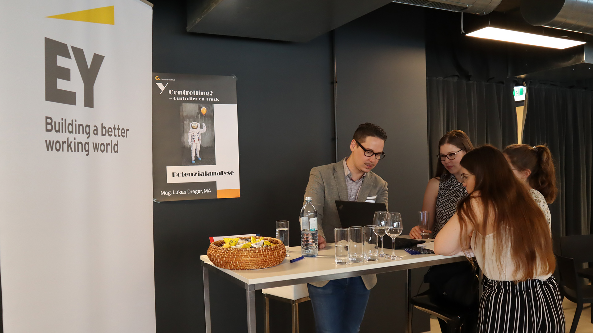 Potenzialanalyse: Ein Blick auf sich selbst. Mag. Lukas Dreger, MA (EY Österreich | Senior Consultant) machte vor Ort eine Potenzialanalyse mit den Young Talents.